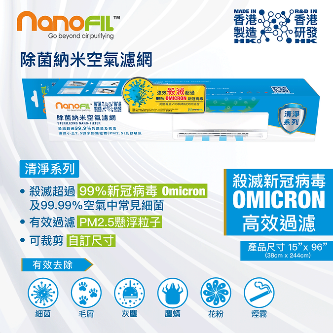 • 消滅超過99%新型冠狀病毒(omicron變種病毒)及99.99%空氣中常見細菌和病毒